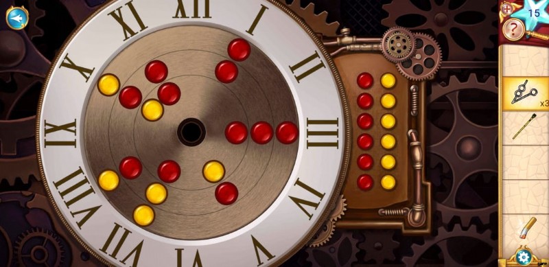 - After placing clock hands, your goal is to set their position to turn six red and six yellow lights on.