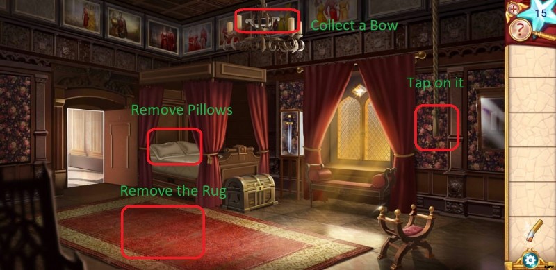 - In the next step, place the stone bow in the culprit’s hands and go back to the room.