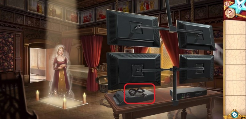 - Go back to the room and open an ancient box using a key to unravel a handle that upon getting pushed may bring projectors and monitors ahead of you.