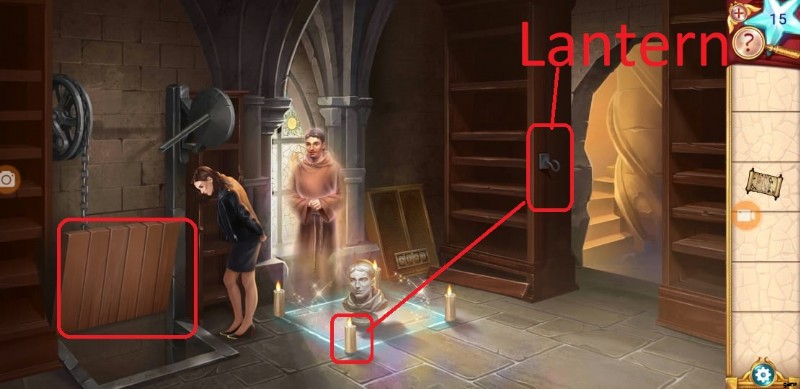 - 床からろうそくを集めてランタンに近づけると、秘密のドアが開かれます。