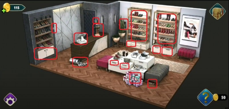 ゲームは、数十のラック、家具、ソファが利用できる靴屋にあなたを歓迎します. レベル 22 の部屋と出口を探索する準備はできていますか ?ジャンプする前に、ゲームは見つけなければならないオブジェクトのリストやヒントを提供しないことを知っておく必要があります。したがって、すべてのトリッキーなパズルを克服し、隠されたオブジェクトを見つけるのに役立ちます。一人称視点を使用して、ソファ、靴、引き出し、コンピューターなどのオブジェクトとやり取りして、解決策を見つけることができます。特定の領域をタップすると、ゲームがシーンにズームインして、アイテムをより明確に表示します。その後、シーンをズームアウトして最初のステージに戻ることができます。 レベル 22 の部屋と出口のウォークスルー ガイドに従ってください 解決策を見つけます。