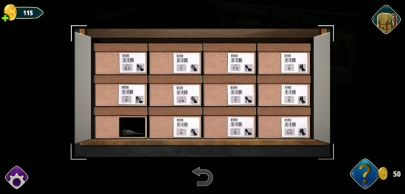 - さて、シューズ ラックに向かい、すべての靴を在庫からラックに保管します。スタイルとタイプに応じてすべての靴を並べ替えて、秘密の通路を開くパズルを解いてください。