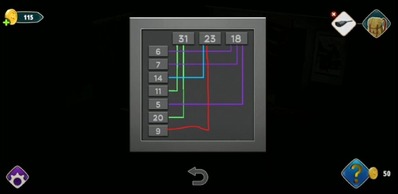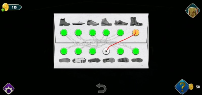- パターンを描いてドアが開いたら、ドアをタップしてミニゲームをプレイします。目的は、靴と魂をつなぐことです。パズルを完成させると、ゲームがひもを解きます。