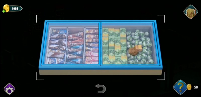 - 右側には、パズルの 2 番目のピースを入れる冷凍庫があります。インベントリからココナッツを選び、それを使ってグラスを割ってください。