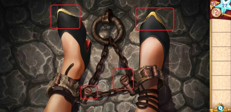 - まず、彼女の靴に固定されている 2 つの曲がった金属を取り外して、ロック ピックとして使用する必要があります。