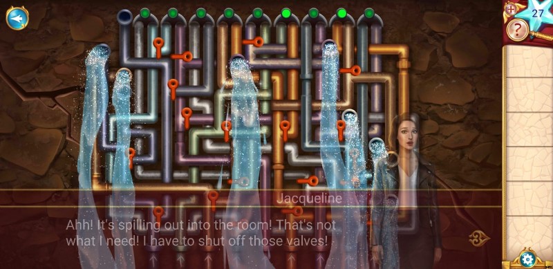 - あなたの前には解決すべきハードルがもう 1 つあります。南京錠のロックを解除した後、ジャクリーンは大量のパイプのプールを発見しました。パイプに過負荷をかけると、ジャクリーンが壁を壊して逃げるのに役立つかもしれません。