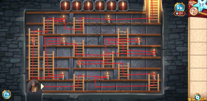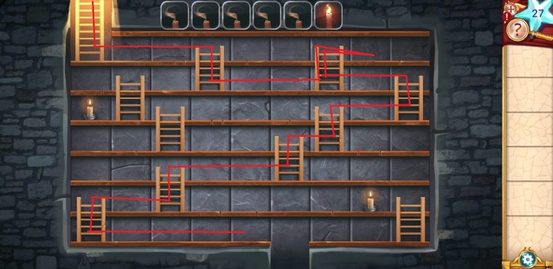 - 脱出に成功したら、別のろうそくを見つけて入手してください。別のパズルを解く必要があり、はしごを登って 6 回以内に各キャンドルにたどり着く必要があります。杖のパズルには 2 つの部分があります。