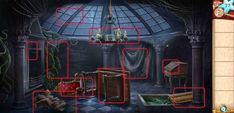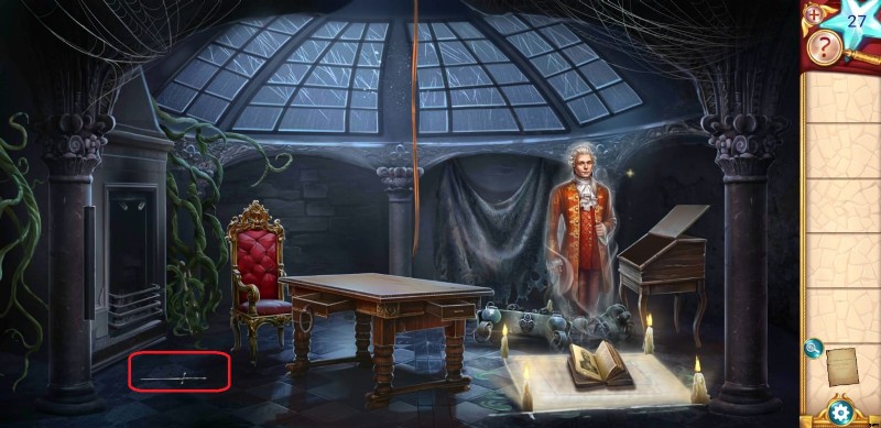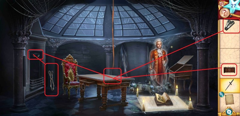 - ムチを使ってシャンデリアを降ろし、4 つのキット キャンドルとワックスを集めて、テーブルの詰まった引き出しを開けます。そのエリアを離れる前に、ウィンドウの縦棒と横棒の両方に注意してください。