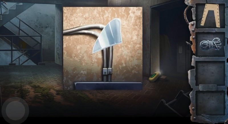 - 階段に向かい、そこからロープを集めます。ワイヤーを切断した後、ミラーを使用して警報システムを無効にします。
