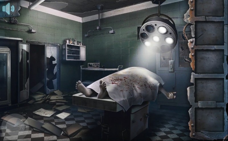 患者のベッドの上に死体が見えると、シーンはより不気味になります。部屋を探索して隠されたオブジェクトを見つけ、それらを利用してトリッキーなパズルを解決してください。