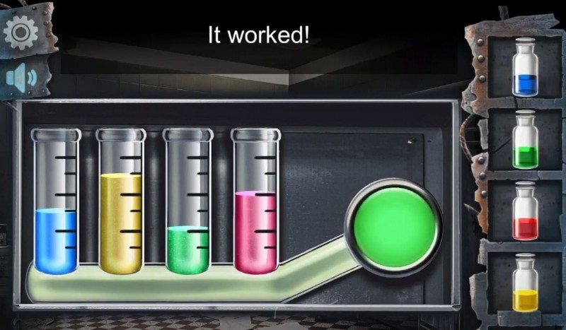 - ドアの左側にはロッカーがあり、最初にすべての液体を注ぎ、適切に管理してドアを開けて脱出する必要があります。