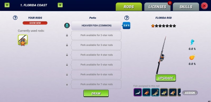 注意 :ゴールドを使用してロッドとルアーをアップグレードし、重量要件を満たすようにします。ルアーをアップグレードすると、珍しい魚を釣るチャンスが増えます。