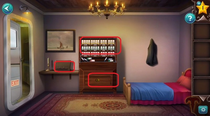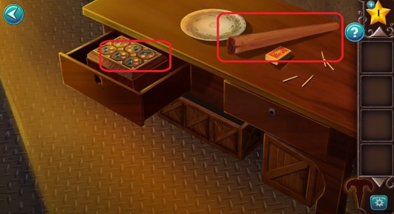 - テーブルから棒を集め、引き出しをタップしてミニゲームをプレイします。目的はパズルを解いて、右側の壁からフックを取り外すために必要なドライバーを手に入れることです。