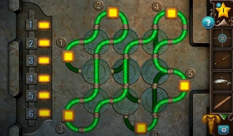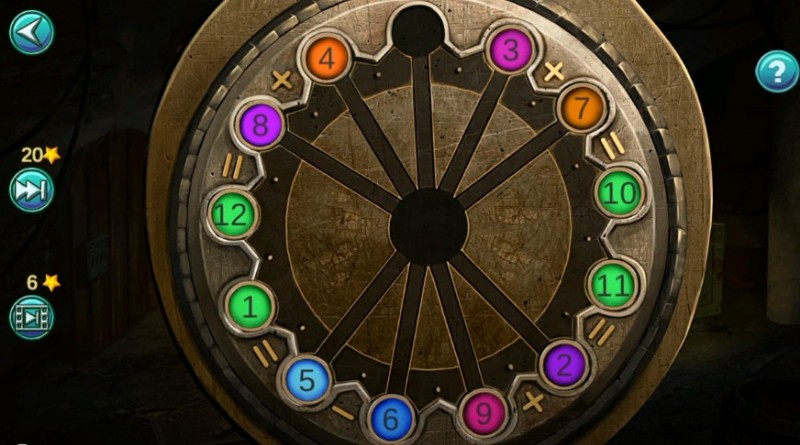 - 持ち物からホイール ハンドルを選択し、ドアに配置してドアを開けます。ただし、最初にトリッキーなパズルを解かなければなりません。