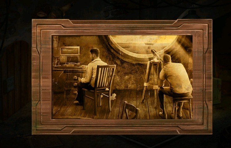 - ジグソー パズルをタップし、ピースを並べてイメージを完成させます。 望遠鏡を集める と 魚の像 1 フォトフレームの後ろから。