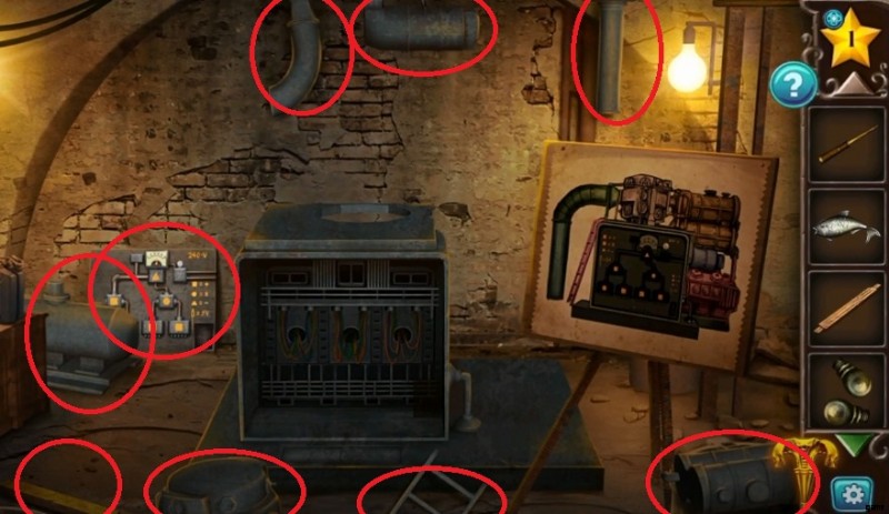 上記のものをすべて集めた後、ドアを通り抜けて、隠されたオブジェクトを見つけてそれらを使用してトリッキーなパズルを解く必要がある新しい部屋を発見します。部屋には、ランプ、燃料タンク、家具など、さまざまなものがあります。