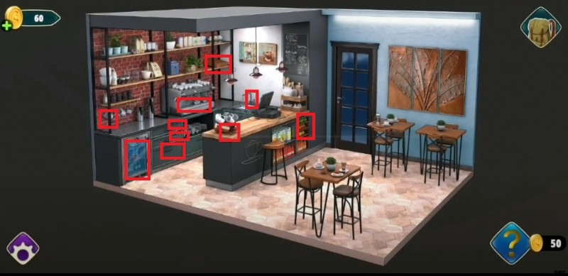 スポーツルームから脱出した後 、美しいアイテム、テーブル、椅子も完備されたコーヒーショップにいることに気づきます。あなたの究極の目標は、どこにも言及されていない隠しオブジェクトを見つけ、それらを利用して鍵のかかった引き出しを開き、手がかりを見つけて、自由への鍵を手に入れることです.