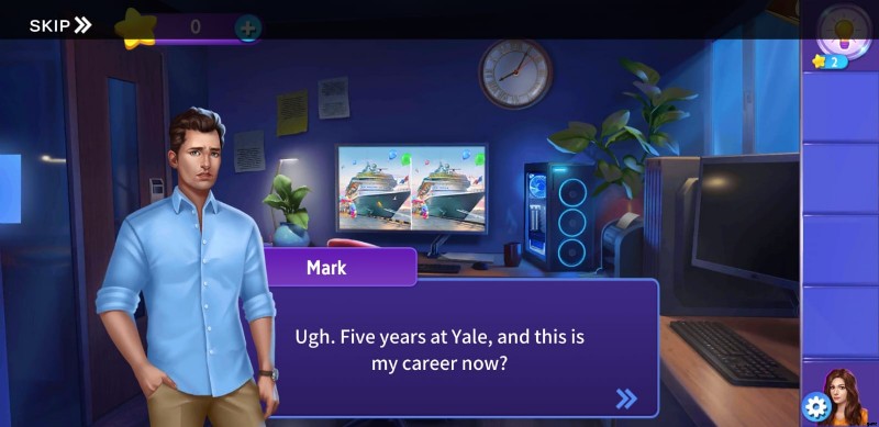 Hidden Escape Murder Mystery の第 2 章は、Mark という名前のキャラクターから始まり、愛を見つけるためにリアリティ ショーに参加する馬鹿について話します。最初の目標は、クルーズ船の 2 つの画像の違いを少なくとも 10 個見つけることです。