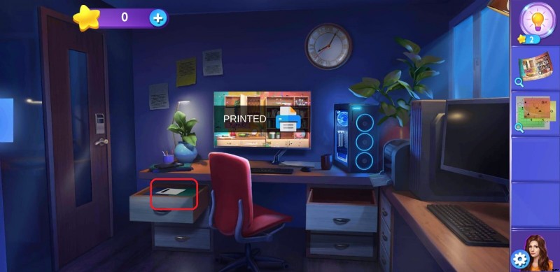 - 異なる色の 3 つの正方形をドラッグするだけでパズルを解いた後、コンピューター テーブルの最初の引き出しを開いて、郵便ポストの手がかりメモを取得します。 .