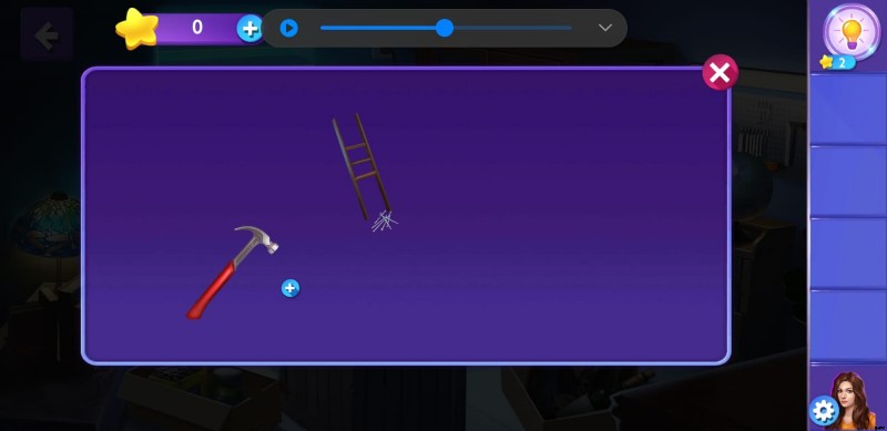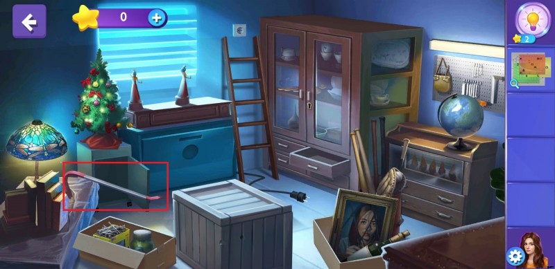 - はしごが修理されると、インベントリに追加されます。次に、食器棚とワードローブの間のはしごを選択して配置し、プラグに到達します。