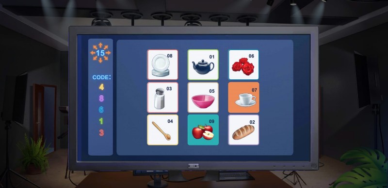 - 次に、最終的な目標は、ゲームがモニターに表示するアイテムを並べ替えて、コード (48613) を取得することです。 ).