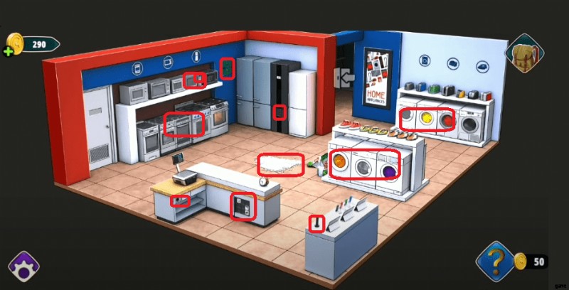 レベルは、洗濯機、電子レンジ、冷蔵庫など、数十のオブジェクトが利用可能な家庭用電化製品として知られる部屋から始まります。隠されたオブジェクトを見つけるために画面をランダムにタップすることは許可されていません。そのため、部屋と出口レベル 26 ウォークスルー ガイドを読むことをお勧めします。