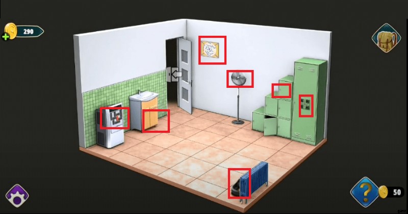 ゲームを開始する前に、部屋を深く調べてクリック可能なオブジェクトを検出し、各オブジェクトと対話して隠されたオブジェクトを見つけます。
