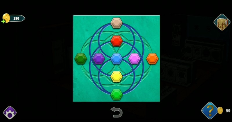 - 最初の洗濯機に向かい、ボタンをタップしてパズルを解いてください。下の画像でわかるように、各ボタンに特定の色を設定する必要があります。