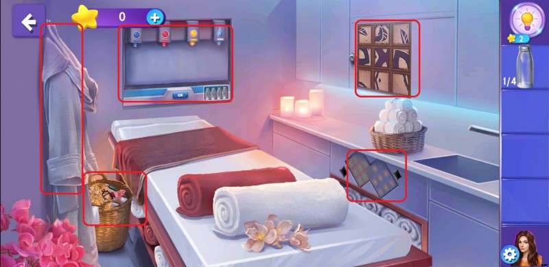 - 上記のアイテムをすべて集めたら、スパ ルームに戻り、前述と同じことを行います