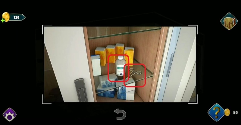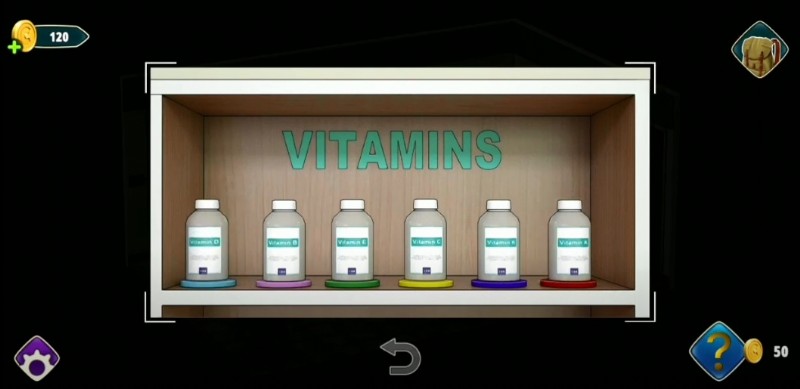 - 上記のアイテムをすべて集めたら、右側にあるラックの薬品ラックをタップして、そこにビタミンのボトルをすべて置いてミニゲームをプレイします。