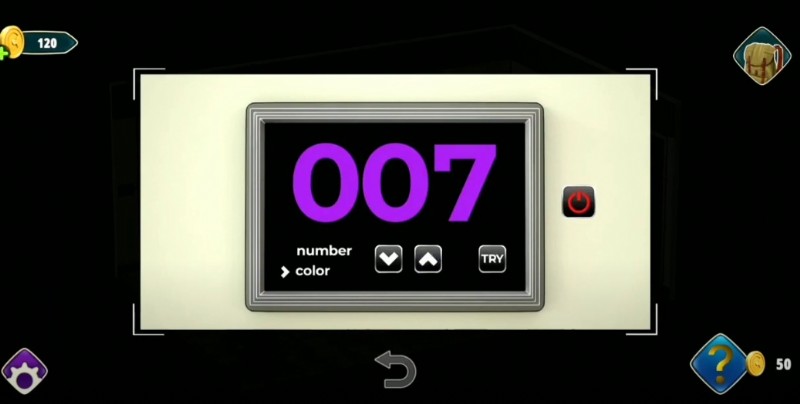 - 出口ドアに向かいます 、コードを入力します (007 )、色を 紫 に設定します ドアを開く .