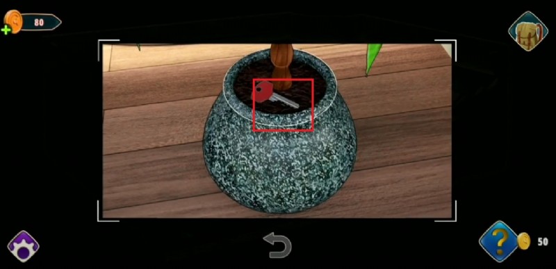 - カウンターの右側で植木鉢を見つけてタップし、鍵を入手します 最初のドロワーを開く必要があること ソファの近くに保管されているワードローブの .