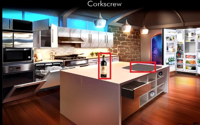 - まず、前菜などの次のアイテムを見つける必要があります 、メガネ 、料理 、オーブン ミット 、コークスクリュー すべてを開いた後。