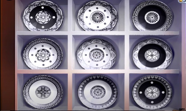 - 鍵を受け取ったら、キッチンに戻ってテーブルに向かい、すべての食器をそこに置きます。各皿には独自のパターンがあり、すべての皿がそれに隣接しています。