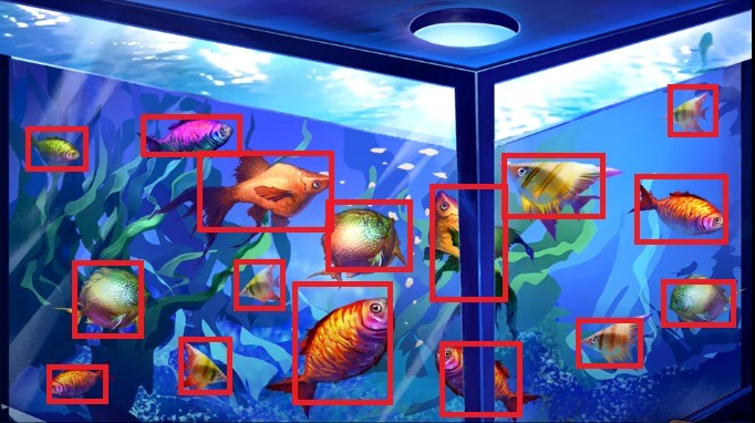 - 次に、さまざまな形の魚を数えます。その数は次のとおりです:ダイヤモンド (2)、ラウンド (3)、目の形 (6)、および三角形 (5).