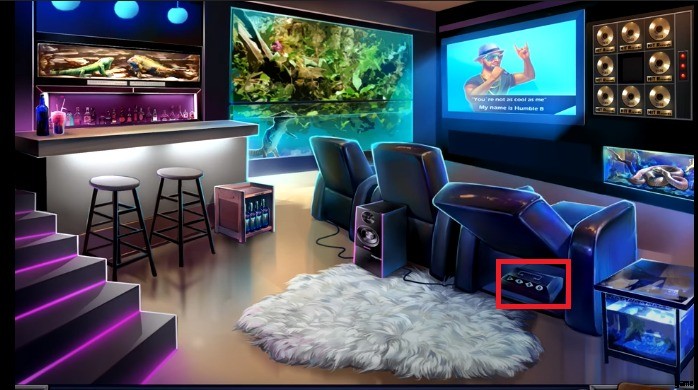 地下室自体が豪華な部屋で、そこには 3 つの椅子と緑豊かな音楽システムを備えた小さな映画館があります。