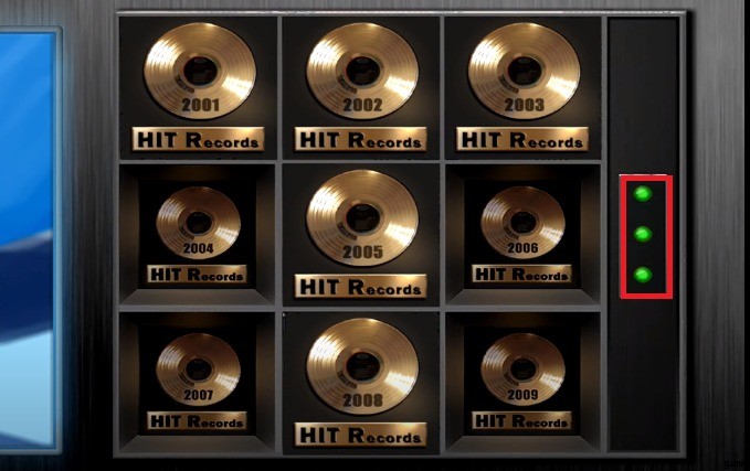 - 他のレコードが置かれている壁に向かい、その間に集めたレコードを置き、「Hit Records」というメモを読みます。