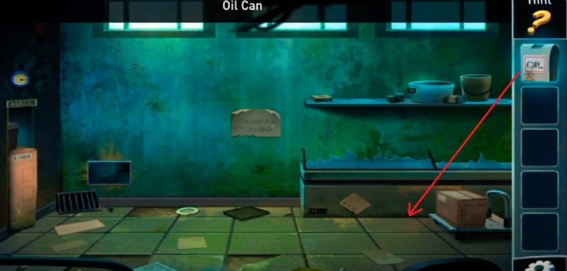 - 缶を選択し、トロリーの詰まった車輪に油を注ぎます。トロリーが行き止まりにぶつかったら、一歩下がって 2 階にたどり着く必要があります。
