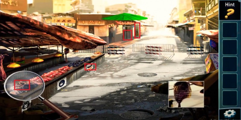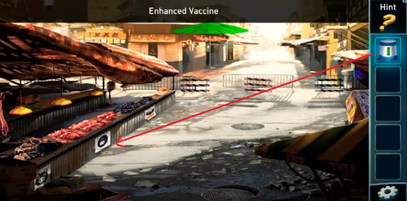 - ハサミを選んで使ってリボンを切り、市場にたどり着きます。在庫から強化ワクチンを選択し、市場をタップして脱出します。