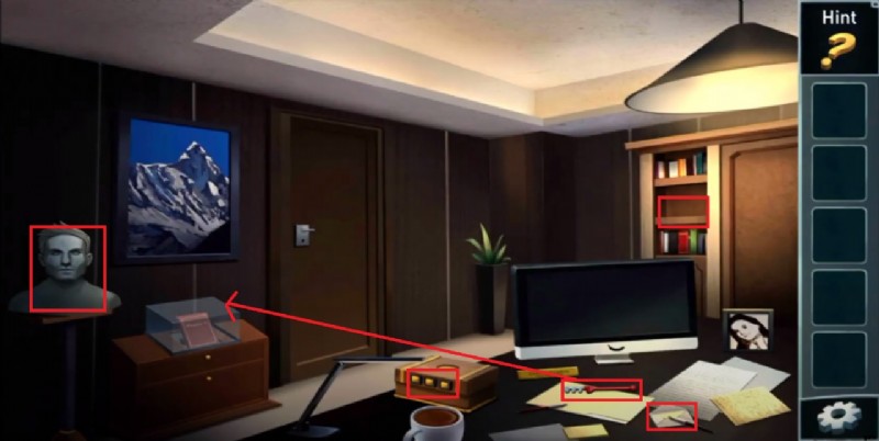 - パズルを完成させると、ドアの横に本が入った箱が開きます。そこから本を受け取り、部屋を出てオフィスに行きます。