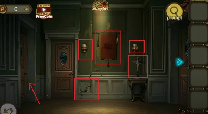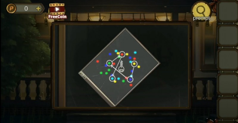 - 左側の窓をタップすると、ガラスに色付きの点がたくさん表示されます。画像に示されているように、ガラス パネルを使用して手がかりを見つけ、先に進んで鍵を見つけてください。