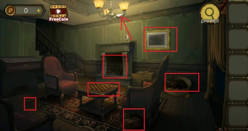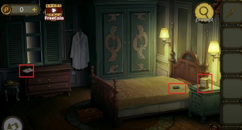 - 最初の部屋から出て、鍵を選択し、左側にある 2 番目のドアを開きます。ランプをつけて部屋を明るくし、手がかりを見つけるために調査を開始してください。