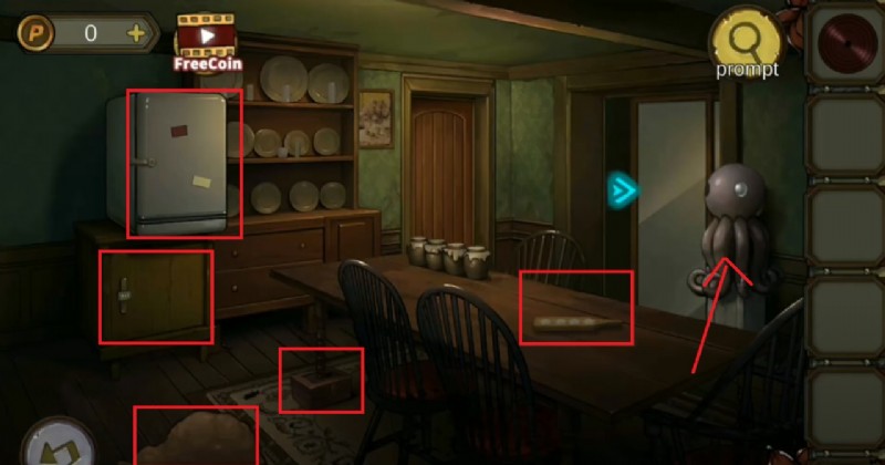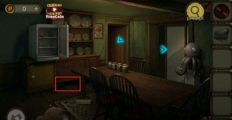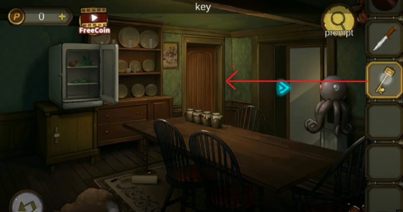 - 冷蔵庫をクリック ダイニングで利用可能 部屋 、三角木版を使用 開けて鍵をもらいます。