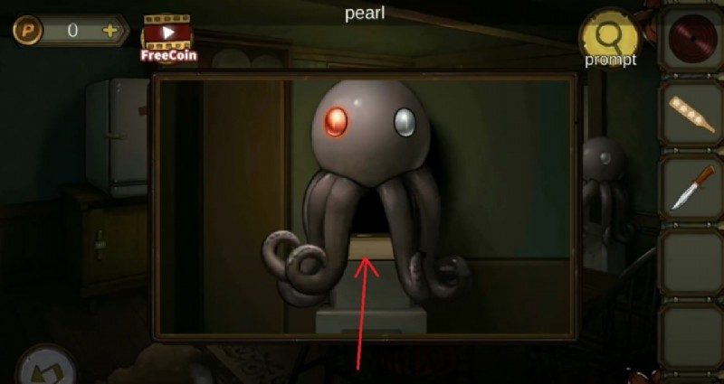 - 食堂に戻ると、目がなくなったタコがいます。そこに真珠を置いて、生物学の本を入手してください。