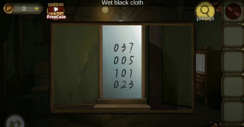 - 台所に行き、黒い布を選んで洗面器で濡らします。次に、濡れた布で鏡をきれいにして、037、005、101、023 の 4 つの数字列を確認します。