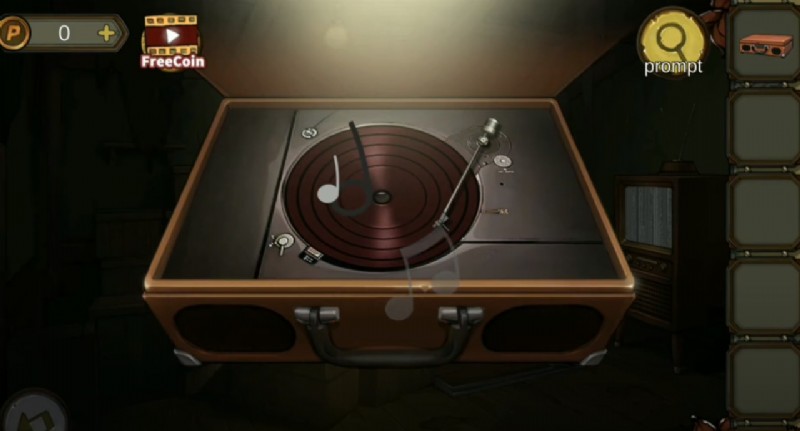 - 化粧台の横のスツールに置かれたレコード プレーヤーを集めたら、部屋を出てください。