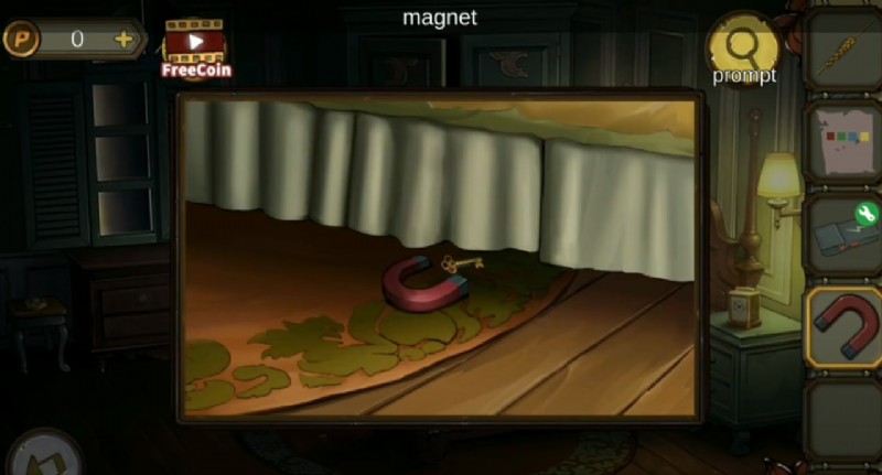 - 部屋に入り、磁石を使ってベッドの下から鍵を取り出し、それを使って左側のドアを開けます。