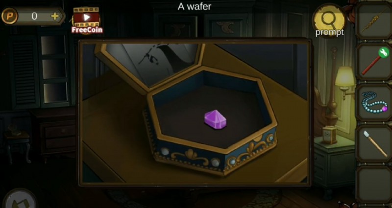 - 「死亡」に設定 ウエハースのためにそれを開くために引き出しに .次に、2 番目の部屋を出て最初の部屋に入り、迷子をタップしてウエハースを保持し、半分の宝石で開けます。
