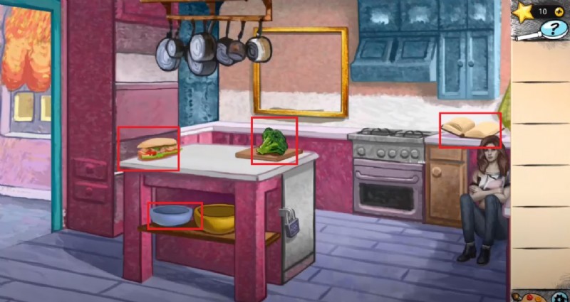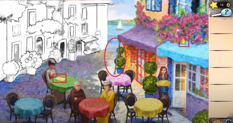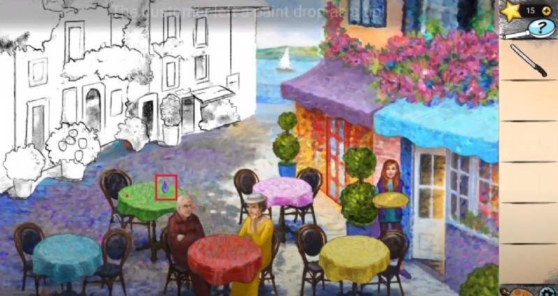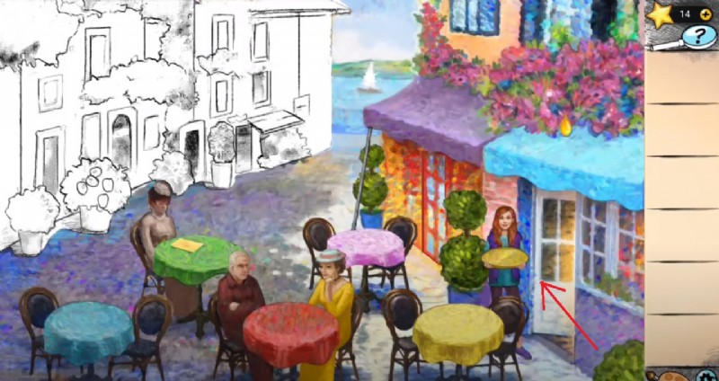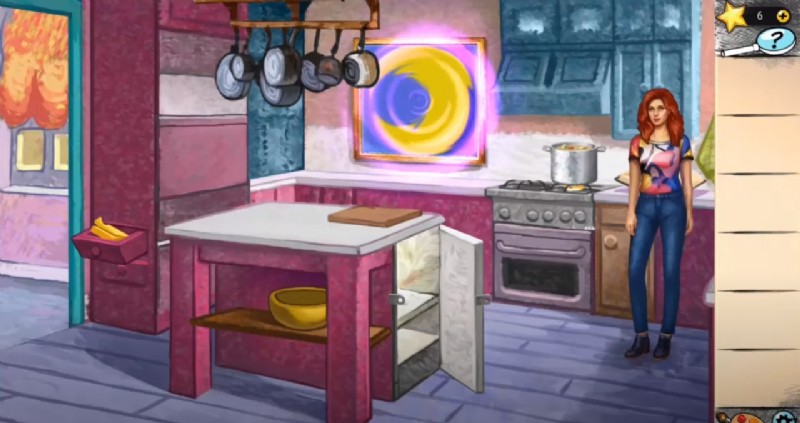 キッチンにたどり着くと、閉じ込められて少女を娘として養子にしたセレステを発見するかもしれません。ここでの最終的な仕事は、最初にブラシを使用してシーンに色を付けることです。