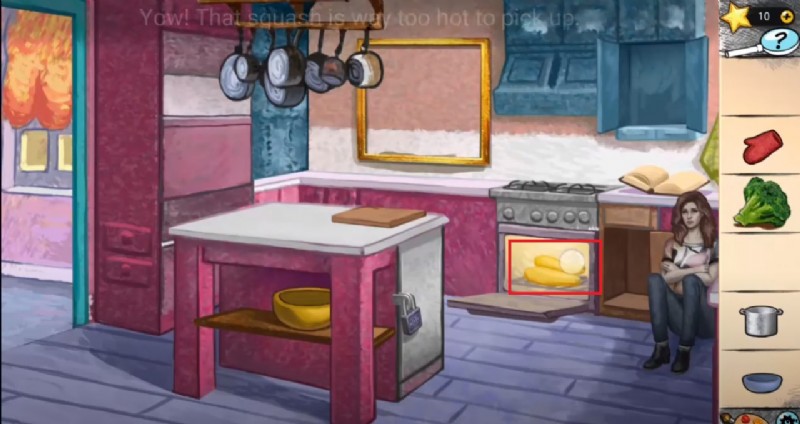 - オーブンから黄色いかぼちゃを取り出すには、オーブン ミットを使用する必要があります。洗面器の上に保管されているレシピを見つけ、付箋を読んで手がかりを見つけてください。